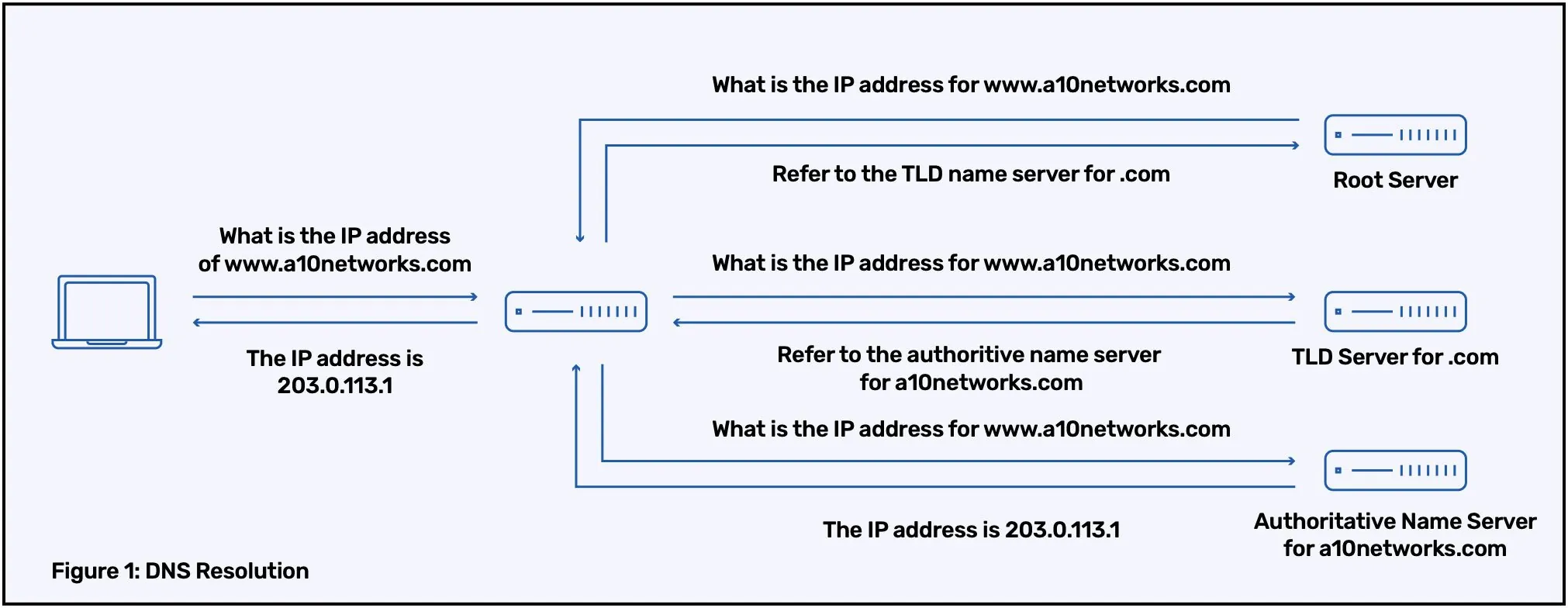 For example, here is a typical flow of DNS resolution process: